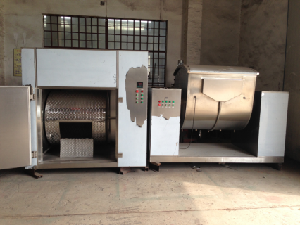 7、在滚筒的上方有高压水喷淋管,与箱体外部的水管连接,并有电磁阀控制喷淋水管,箱体的内部滚筒两侧装有漂洗溢流管道,在清洗过程中产生的废水通过溢流管排到箱体外面,在烘箱的底部设有排污管,为手动控制,在清洗结束后,打开排污,排尽内部积水再进行下一步烘干灭菌工作。烘干灭菌在箱内一次自动完